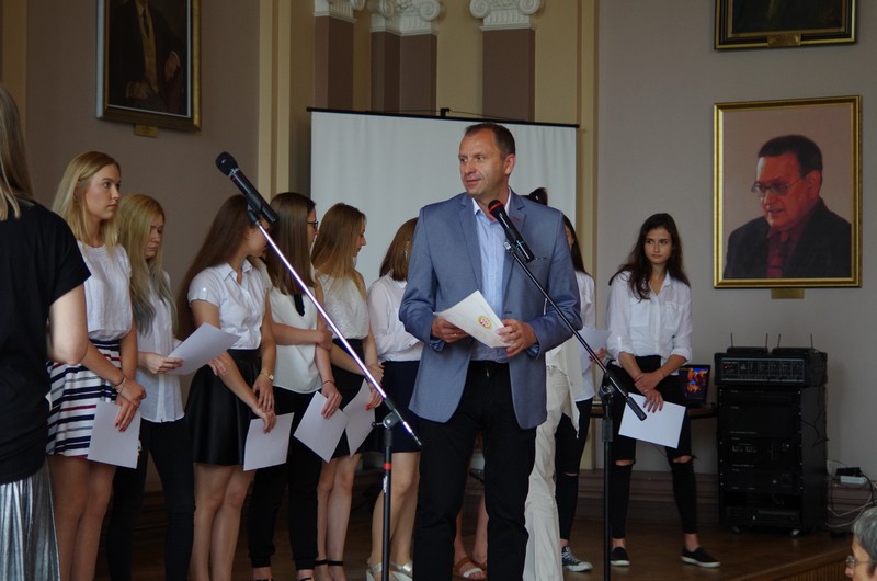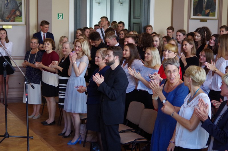 Ceremonia zakończenia roku szkolnego 2016/17 rozpoczęła się o godzinie 10.00. W szkolnej auli zgromadzili się uczniowie, dyrekcja szkoły, przedstawiciele Rady Rodziców, nauczyciele i inni pracownicy szkoły.